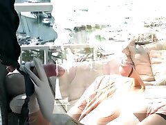 Beautiful blonde with great tits fucks outside on a boat and tropical island