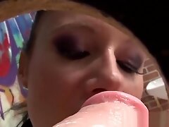 Slave Sucks His Mistress Big Strap-on
