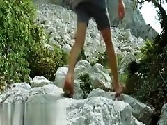 Pale and outgoing Japanese wife outdoor sex under blue sky