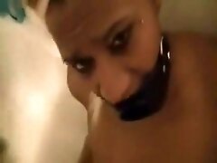 Trashy Black Ghetto Slut Gagging During Rough Face Fuck