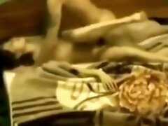 Horny brunette toys in vintage retro lingerie nylon heels