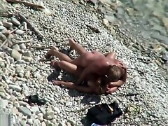 Exhibitionist caught by blonde girl, having great sex on the seashore