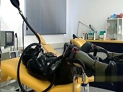 Slave Girl In Latex Catsuit In Electro-shock-heels