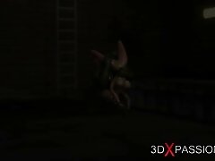 Big monster plays with a hot sexy girl in the sewer