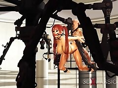 Sci-fi BDSM! Red haired hot gagged girl in cuffs gets fucked hard by a midget man