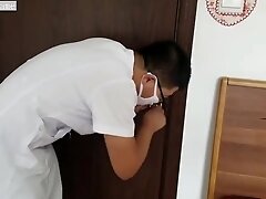 Blindfolded and masked Asian girl gets teased by Master with sex toys