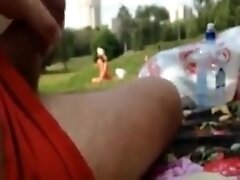 Flasher cums near girl in park