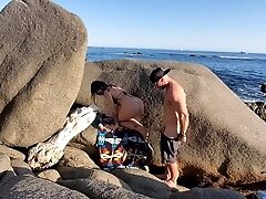 Cockhungry babe riding 2 bisex guys