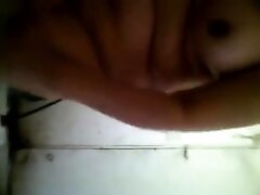 Police voyeur teasing prisoner who jerks on her naked boobs