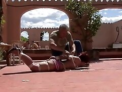 Pussy whipping and feet caning of amateur bastinado slaveslut in hard spanking and bondage