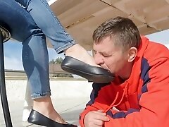 Foot fetish video with mistress and her submissive man