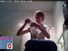 Voyeur CFNM babe in office teases man who jerks on her 4:50